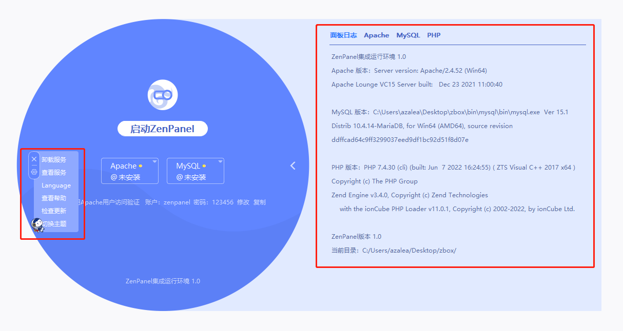 - 2. ZenPanel集成运行环境使用说明